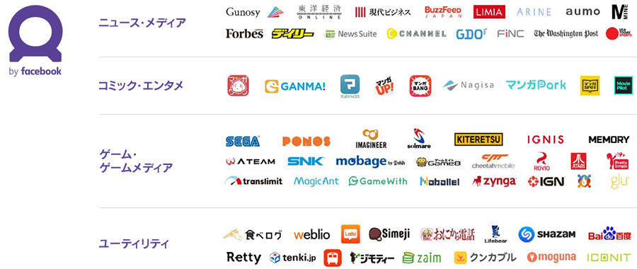 その他、Audience Networkと呼ばれる多数の提携パートナーのメディアやアプリなど多くの広告枠に配信が可能です。