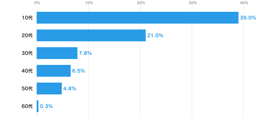 10代の中高生から、20代までの若年層の利用が多い傾向にあります。TikTokは、日本でのリリースは2017年とSNSとしては後発のサービスでありながら、2018年のアプリダウンロード数1位になるなど、今最も勢いのあるSNSと言えます。